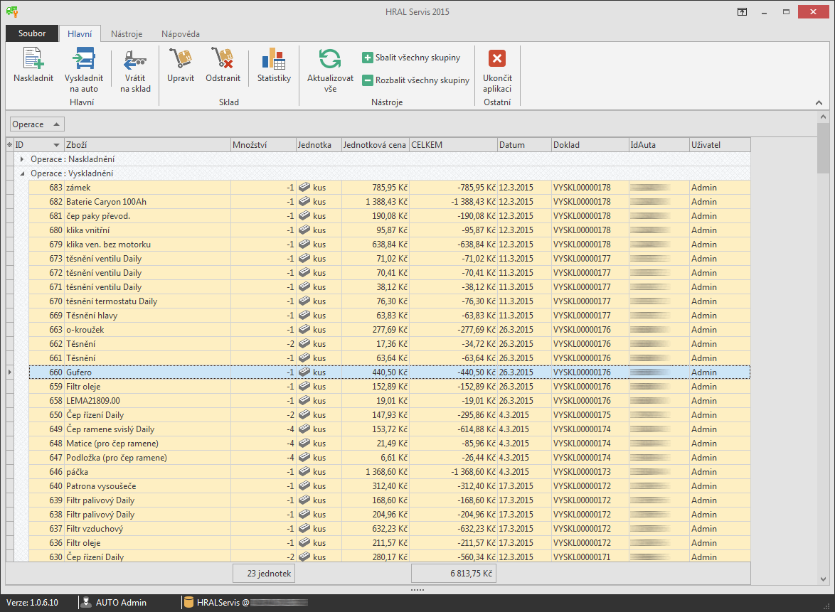 HRAL Servis je další databázová aplikace napsaná v Delphi XE 7 a spolupracující s SQL Serverem 2014. Opět byly použité "serverové" komponenty, které umožňují rychlé napojení a zpřístupnění velkého množství dat. Pro zobrazení se využívá pokročilých mřížek, u kterých je možné filtrování, řazení, seskupování i nastavení dalších úprav dle potřeb uživatele. Design ve stylu MS Office 2013 je samozřejmostí. Aplikace slouží jako rozšířená evidence zboží na skladu, resp. evidence vydaného zboží a materiálu na jednotlivá auta. Má také zabudován inteligentní systém na výběr zboží dle různých nákupních cen, hlídání počtu kusů, podrobné statistiky nebo export do MS Excelu. I zde jsou všechny důležité operace logovány a celý systém využívá systém na zachycení chyb a výjimek. Aplikace má také zabudován nejnovější systém na aktualizace AUDREY Updater 3.0 a podporuje zobrazení na více monitorech.