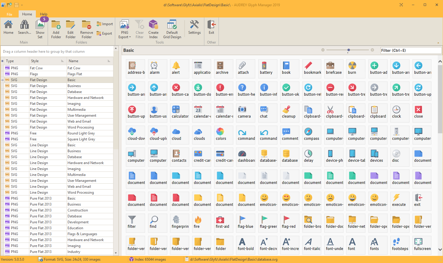 Application Glyph Manager offers easy and quick SVG and PNG icon management. Application can be useful for programmers, web designers or graphics. It is possible to view icons organized in folders, search icons, filter icons, manage folders with icons or copy path to icon with specific size. Last but not least option is opening icon in Photoshop, IrfanView, Axialis IconWorkshop, Zoner Photo Studio etc. Special function offers to manage sets of icons and export it to one PNG file. This function is appreciated while working in Delphi, Visual Studio or with sprites in web development.