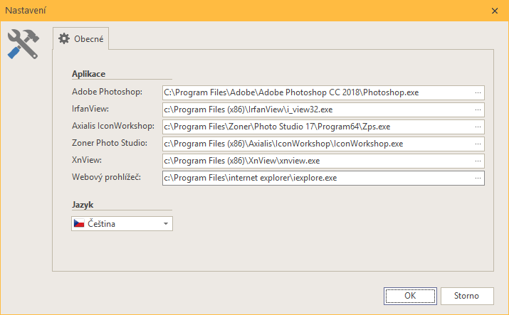 - Podpora Photoshopu, IrfanView, Zoner Photo Studia, Axialis IconWorkshopu a XnView